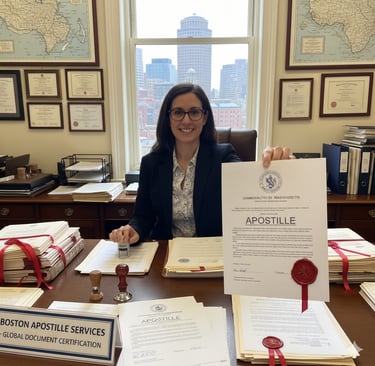 Professional apostille services in Boston for birth certificates, marriage records, school documents, and international filings. Fast Massachusetts apostille processing and mobile support for clients who need accurate certification.