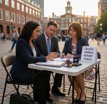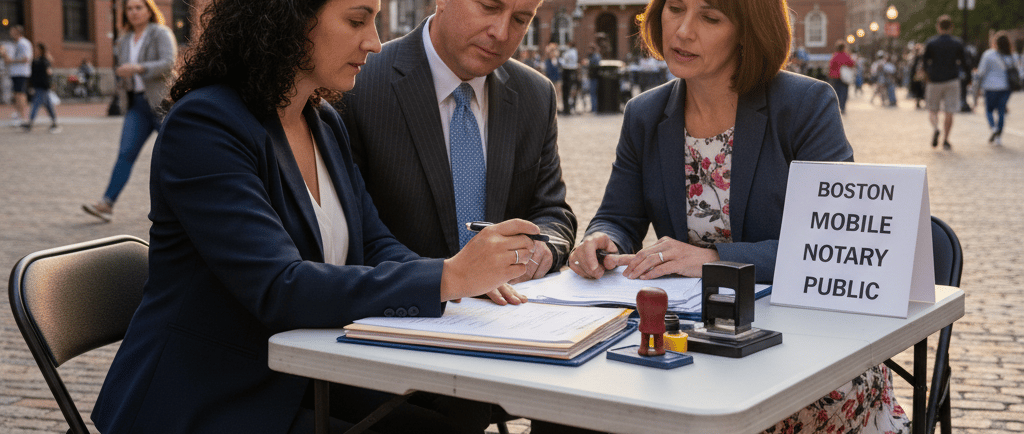 Professional mobile notary public in Boston MA offering reliable notarization, hospital visits, real estate documents, power of attorney, affidavits, and same day service. Available across Boston and surrounding areas.